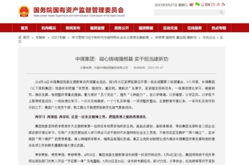 【國資委網(wǎng)站】中煤集團:凝心鑄魂強根基 實干擔(dān)當建...